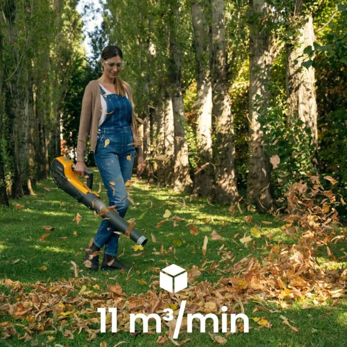 - Tre hastighetsnivåer som hjälper dig att rensa bort löv och skräp på olika typer av utomhusytor.