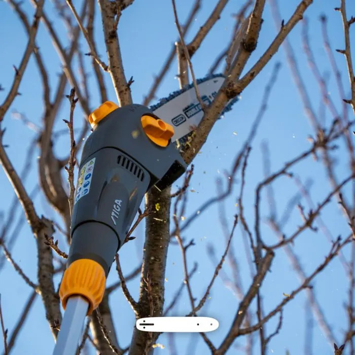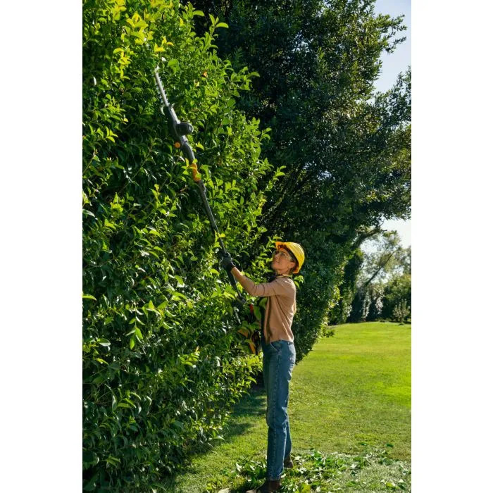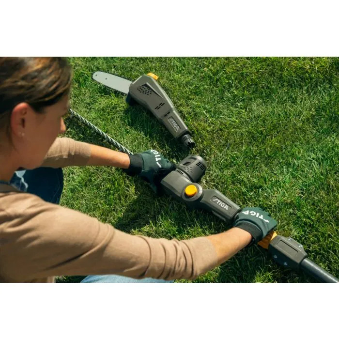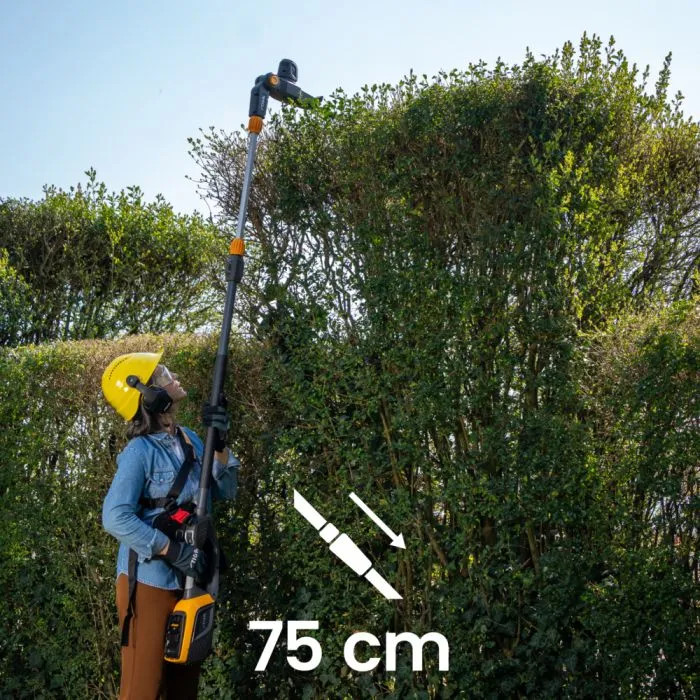- 75cm teleskoprigg som ger en totallängd på 2,95m (häcksaxstillbehör) och 2,70m (sågtillbehör)