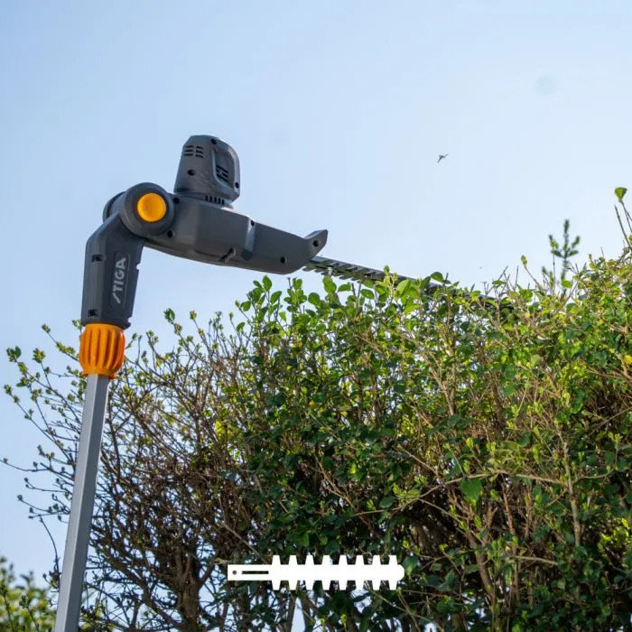 MT 500e Kit är ett lätt och kraftfullt multitool, bestående av en teleskoprigg, häcksaxstillbehör och sågtillbehör som enkelt kan trimma och beskära buskar och träd som är svåra att nå. Maskinen drivs av ett 48V 2Ah-batteri och detta robusta multitool ger dig upp till 20 minuters klipptid med häcksaxtillbehöret eller 8 minuters beskärningstid med sågtillbehöret, på en laddning. Med ett 112 ° roterande handtag hittar du enkelt den mest bekväma arbetsvinkeln för dig.