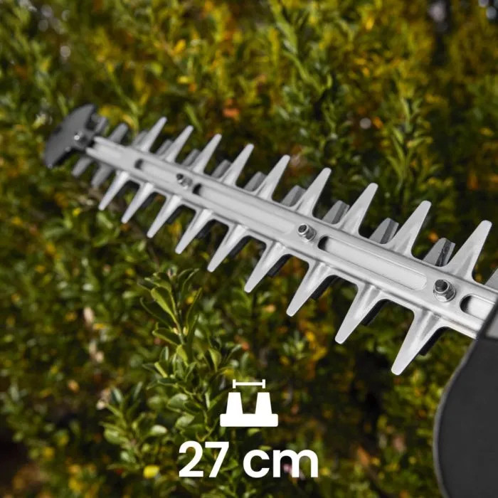 Med sin lätta motor och ergonomiska design är bensinhäcksaxen HT 525 den perfekta kombinationen mellan hög prestanda och enkel manövrerbarhet. Dess dubbelhärdade 60 cm hårda svärd ger den styrka och precision som behövs för tuffa arbetsuppgifter. Innovativa funktioner som flerpunkts-antivibrationsfjädersystemet hjälper till att minska belastningen på dina händer och armar.